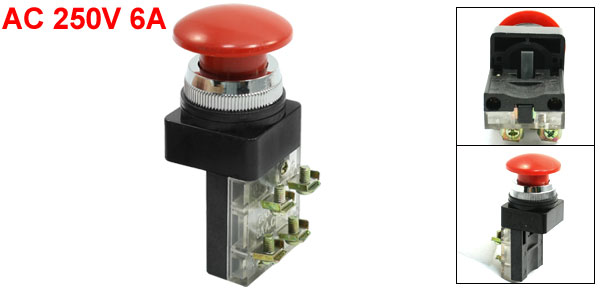 AC 250V 6A Red Mushroom Button Non Lock Pushbutton Switch DPST NO NC