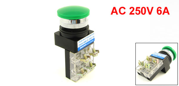 AC 250V 6A SPDT Panel Mounted Momentary Green Mushroom Push Button Switch