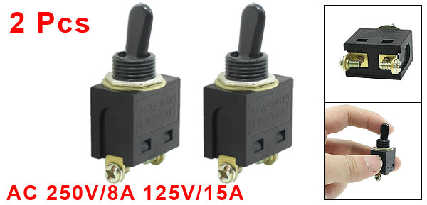 AC 250V/8A 125V/15A 2 Terminal On-Off 2 Positions SPST Toggle Switch Pair