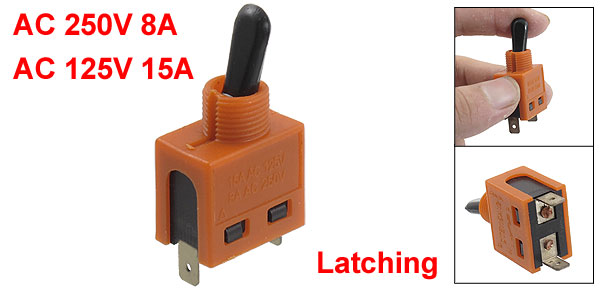 Product Name Toggle Switch Action Type Latching Contact Type SPST NO Number of Position 2(ON/OFF) Voltage/Current AC 250V 8A, AC 125V 15A Pins Distance 20mm/ 0.79" Thread Diameter 11.5mm/ 0.45" Size 2.3 x 1.4 x 4.6cm/ 0.91" x 0.55" x 1.81" (L*W*H) Material Plastic, Matel Color Orange Weight 9g Package 1 x Toggle Switch - Reviews