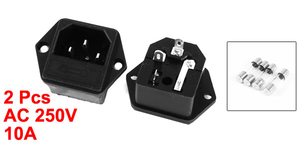 AC 250V IEC 320 C14 Male Plug Inlet Power Socket 2 Pieces w 4 Pcs 5x20mm Fuse 5A