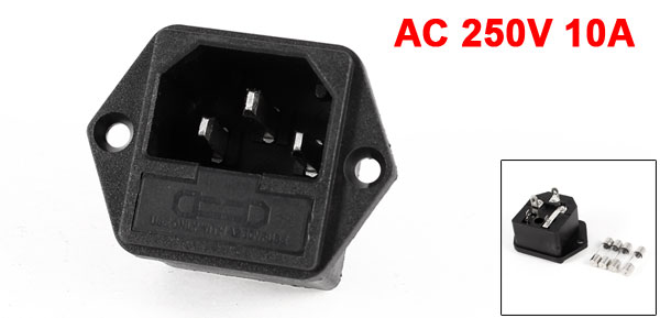 Product Name Power Inlet Socket Power Supply AC 250V 10A Plug Type IEC 320 C14 Pins Number 3 Mounting Type Screw Type Mounting Size 3.1 x 2.7cm / 1.2" x 1.1" (L*W) Mounting Hole Diameter 3.6mm / 0.14" Overall Size 4.4 x 3.3 x 2.9cm / 1.7" x 1.3" x 1.1" (L*W*T) Fuse Size 5 x 20mm / 0.2" x 0.8" (D*L) Fuse Power 5A Material Plastic, Metal Color Black, Silver Tone Net Weight 18g Package Content 1 x Power Inlet Socket
