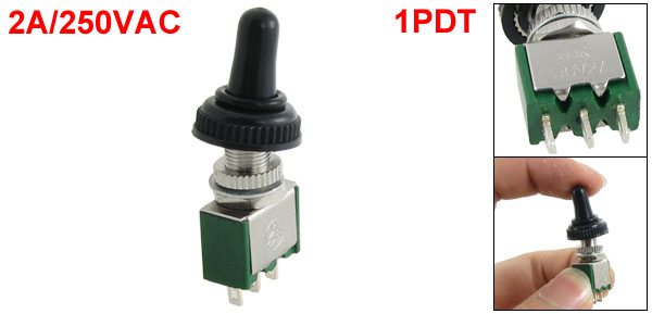 AC 2A/250V SPDT On/On 2 Position 3 Pin Toggle Switch w Waterproof Boot Cover Cap