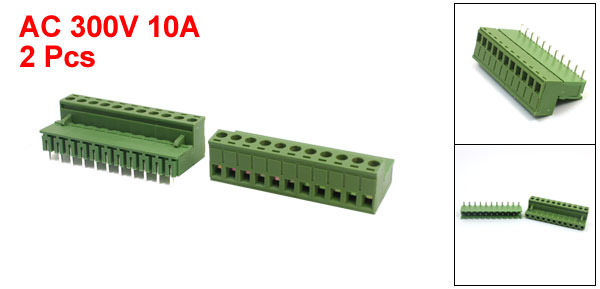 AC 300V 10A 5.08mm Pitch 11-Pin Right Angle PCB Screw Terminal Block Green 2 Pcs