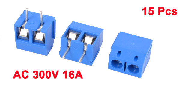 Product Name PCB Terminal Block Rated Value AC 300V 16A Pin Quantity 2 Pin Pitch 5mm/ 0.2" Size 11 x 8 x 14mm/ 0.43" x 0.31" x 0.55" (L*W*H) Material Plastic, Electric Parts Color Silver Tone, Blue Net Weight 24g Package Content 15 x PCB Terminal Block - Reviews