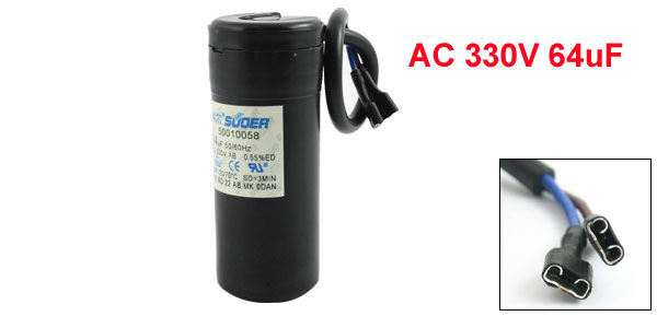 AC 330V 64uF Non Polar Air Conditioner Compressor Motor Run Capacitor Black