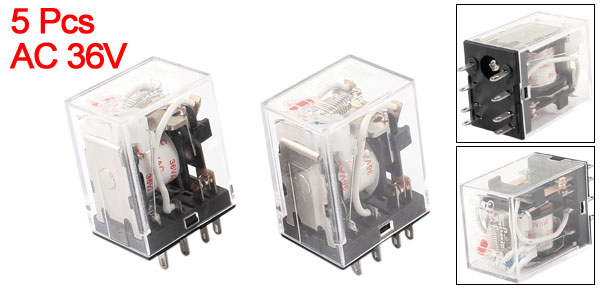 AC 36V Coil DPDT 8-Pin Red LED Light General Purpose Power Relay 5 Pcs