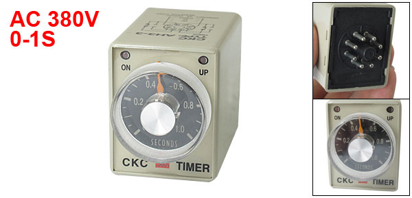 DetailsAC 380V 0-1 Seconds 1s Plastic Housing Delay Timer Time Relay 8 Pin AH3-3  Product Name Time Relay Type AH3-3 Coil Voltage 380V AC Contact Type DPDT Contact 5A 250VAC Resistive Load Time Range 0-1 Seconds