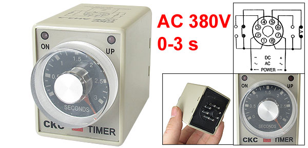 Product Name Time Relay Type AH3-3 Coil Voltage 380V AC Contact Type DPDT Contact 5A 250VAC Resistive Load Time Range 0-3 Seconds