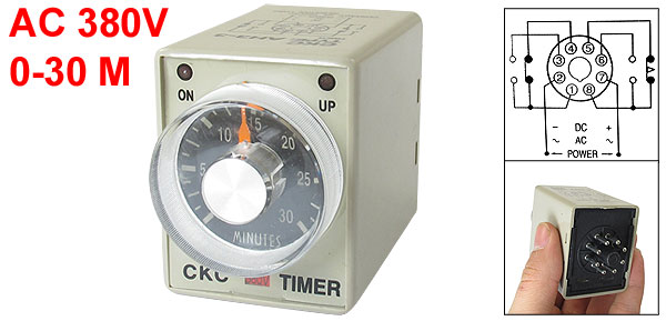 AC 380V 0-30 Minutes 30m Plastic Housing Delay Timer Time Relay 8 Pin AH3-3