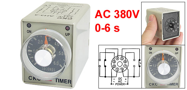 Product Name Time Relay Type AH3-3 Coil Voltage 380V AC Contact Type DPDT Contact 5A 250VAC Resistive Load Time Range 0-6 Seconds