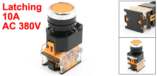 AC 380V 10A 1NO 1NC Latching Orange Round Button Pushbutton Switch