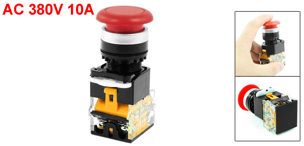 Product Name Push Button Switch Contact Type 1NO 1NC (DPST) Action Type Momentary Head Shape Mushroomhead Ith 10A Ui 380V Terminal Quantity 4 Panel Cutout Diameter 22mm / 0.87"(7/8") Fit Panel Thickness (Adjustable) Max 5.5mm / 0.22" Button Diameter 3.5cm / 1.4" Total Size(Approx) 8 x 4 x 3cm/3.15" x 1.6" x 1.2"(L*W*H) External Material Plastic, Electric Parts Button Color Red, Black Weight 52g Package Content 1 x Push Button Switch - Reviews