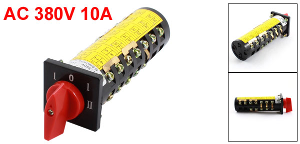 Product Name Changeover Switch Model No. HZ5B-10 Ui AC 380V Ith 10A Terminals 24 Screw Terminals Positions 4 Positions Panel Size 48 x 48 x 6mm/1.9" x 1.9" x 0.24"(L*WT) Body Diameter 42mm /1.6" Overall Size 16 x 5 x 4.2cm /6.3" x 2" x 1.6"(L*W*T) Mount Hole Dia 4.8mm/0.19" Mount Hole Center Distance 37 x 37mm/1.5" x 1.5"(L*W) Color Black, Red Total Weight 340g Net Weight 304g Package Content 1 x Changeover Switch