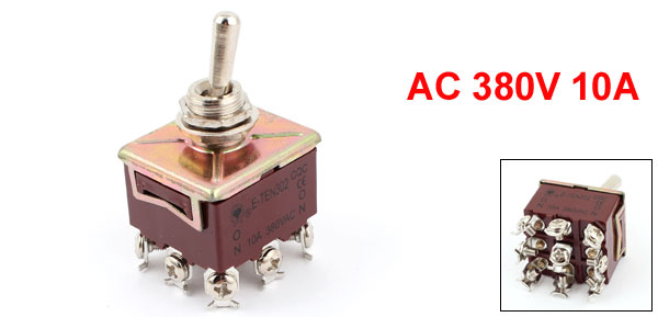 AC 380V 10A 9 Screw Terminals ON-ON 2 Position 3PDT Toggle Switch