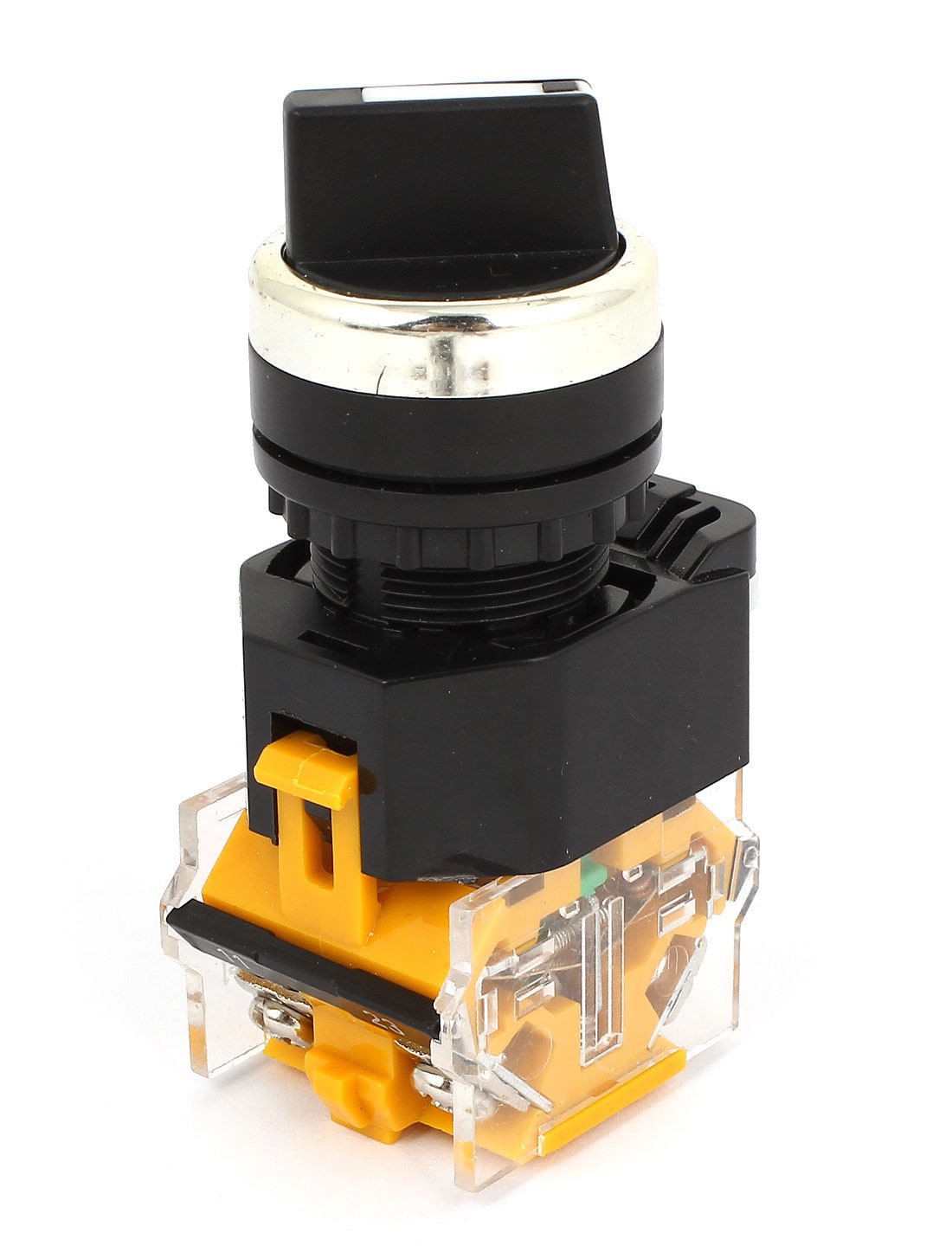 Product Name Rotary Button Switch Material Plastic, Metal Type Rotary Selector Switch Positions 3 Ith 10A Ui 380V Terminal Number 4 Contact Type 1 NO(Normally Open) + 1 NC(Normally Close) Mounting Hole Diameter 21mm / 0.83"(7/8") Fit Panel Thickness 0.5cm / 0.2" Button Diameter (Approx.) 3cm / 1.2" Knob Length 2.3cm/0.9" Total Size (Approx.) 3.7 x 2.8 x 7.7cm / 1.5" x 1.1" x 3" (L*W*H) Color Black, Yellow Weight 46g Package Content 1 x Rotary Button Switch - Reviews