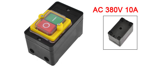 DetailsAC 380V 10A I/O Rectangle Plastic Housing Push Button Switch Station  Product Name Power Push Button Switch Station Model LA128KAO-5 Type I/O (ON-OFF) Material Plastic, Electric Parts Voltage AC 380V 10A Total Size (Approx.) 9 x 5.6 x 5.6cm/ 3.54" x 2.2" x 2.2" (L*W*H) Mount Hole 4mm/ 0.16" Color Black, Red, Green Weight 129g Package Content 1 x Power Push Button Switch Station