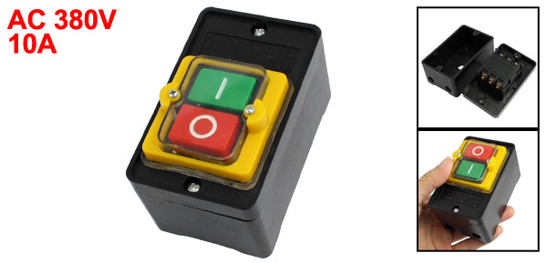 Product Name Push Button Switch Model No. KAO-5 Material Plastic, Metal Voltage AC 380V Ith 10A Overall Size (Approx.) 90 x 56 x 62mm / 3.5" x 2.2" x 2.4" (L*W*T) Color Black, Red Green Weight 128g