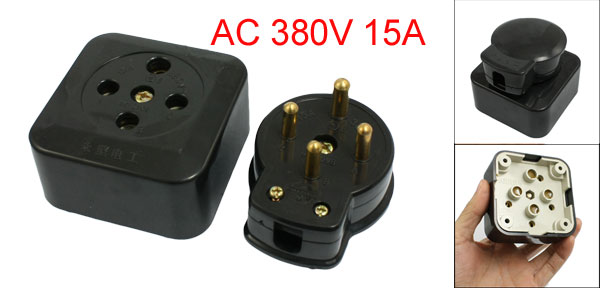Product Name Industrial Socket Plug Set Type Three Phase Four Wire Power AC 380V 15A Socket Size 7.5 x 7.5 x 3.5 cm / 2.9" x 2.9" x 1.4" (L*W*H) Plug Total Size 7.3 x 6 x 4.5 cm / 2.9" x 2.4" x 1.8" (L*W*H) Pin Size Small: 6 x 17 mm / 0.24" x 0.67" (D*L)
