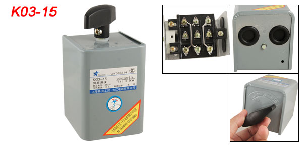 Product Name Forward Reversing Switch Model K03-15 Rated Working Voltage 380V Rated Working Current 10A Rated Working Power 3KW Rated Frequency 50/60Hz Handle Size 6.2 x 2 x 2cm/ 2.4" x 0.8" x 0.8" (L*W*T) Overall Size 10 x 7.3 x 7.6cm/ 3.9" x 2.9" x 3" (L*W*T) Mount Size 6.3 x 5cm/ 2.5" x 2" (L*W) Material Plastic, Metal, Electric Part Color As Picture Shown Net Weight 379g Package Content 1 x Forward Reversing Switch - Reviews