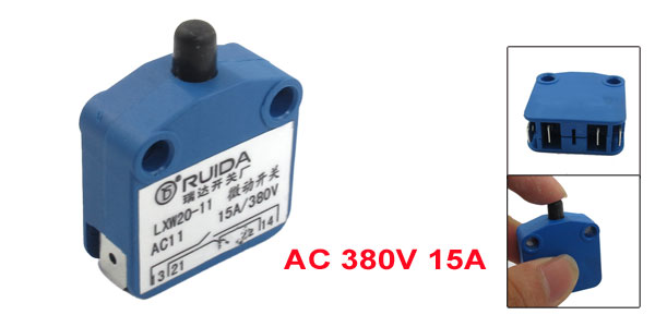 Product Name Micro Switch Model No. LXW20-11 Contact Type 1NO, 1NC SPDT Mounting Type Panel Mount Actuator Type Button Rating AC 380V 15A Switch Body Size 2.9 x 1.2 x 2.9cm / 1.14 x 0.47 x 1.14"(L*W*H) Fixing Holes Diameter 4.6mm/0.18" Terminals Width(Approx) 6.3mm/0.25 Button Height(Approx) 6mm/0.24" Color Blue, Black Net Weight 12g Package Content 1 x Micro Switch - Reviews