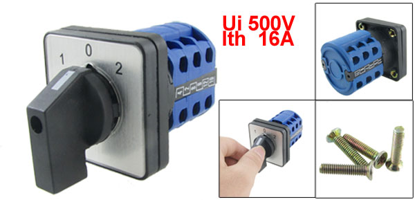 Product Name Changeover Switch Model No. CJ-LW28-20D0724/3 Ui 500V Ith 16A AC-15 Ue: AC 380V, Ie: 1.5A DC-13 Ue: DC 220V, Ie: 0.14A Positions 1-0-2 Terminal Number 12 Body Diameter 43mm / 1.7" Overall Size(Approx.) 49 x 49 x 82mm / 1.9" x 1.9" x 3.2"(L*W*H) External Material Plastic Net Weight 101g Package Content 1 x Changeover Switch
