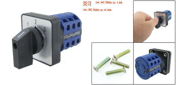 Positions 1-2-3(on/off/on) Terminal Number 12 Screw Terminals Body Diameter 43mm / 1.7" Overall Size 49 x 49 x 83mm / 1.9" x 1.9" x 3.3"(L*W*H) External Material Plastic Net Weight 108g Package Content 1 x Changeover Switch