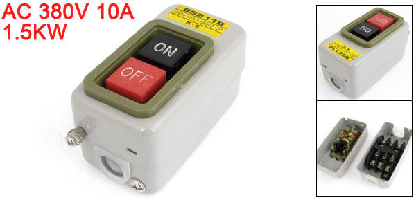 Product Name Power Push Button Switch Model BS211B Type ON-OFF, 3P Main Material Metal, Plastic Voltage AC 380V 10A Power 1.5KW Total Size (Approx.) 8.3 x 4.3 x 4.7cm/ 3.3" x 1.7" x 1.9" (L*W*H) Mount Hole 8mm/ 0.3" Color Gray, Red, Black Main Color Gray Weight 105g Package Content 1 x Power Push Button Switch - Reviews