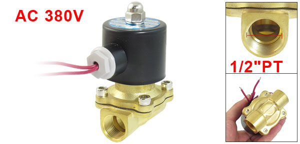 Product Name Solenoid Valve Type 2 Way Material Metal Voltage AC 380V Working Temperature -5 ~ 100 Centigrade Degree Operating Pressure 0 ~10 Kgf/ cm2 Female Thread Diameter 21mm Female Thread Size 1/2"PT Total Size (Approx.) 7.2 x 5 x 10.5cm / 2.8" x 2" x 4.1"(L*W * H) Cable Lenght 21cm/8.3" Color Black, Brass Tone Net Weight 625g Package Content 1 x Solenoid Valve - Reviews