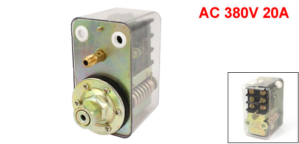 Main Color Bronze Tone, Clear, Black Rated Pressure 0.8Mpa Country of Manufacture CHINA Rated Voltage/Current AC 380V, 20A Material Plastic, Metal, Electric Parts Joint Thread Diameter 15mm /3/8BSP Air Inlet Hole Diameter 1.5mm/0.06" Product Name Pressure Switch Net Weight 717g Package Content 1 x Automatic Pressure Switch Pressure Difference 0.3卤0.05mpa Regulated Pressure Range 0.3-1.5MPa Air Inlet Thread Diameter 9mm/0.35" Size 6.7 x 8 x 11.7cm/2.6" x 3.1" x 4.6"(L*W*H) - Reviews