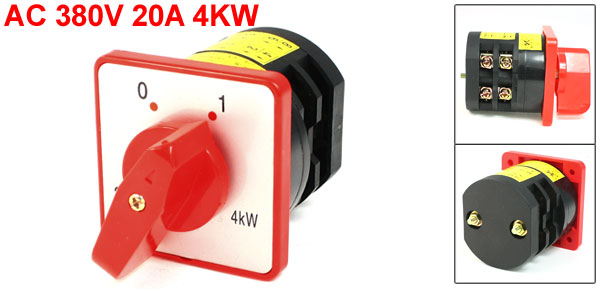 Product Name Changeover Switch Model No. HZ5-20/4 Ue 380V Ith 20A Power 4KW Positions 2 Positions(0-1) Terminal Number 8 Body Size 56 x 48 x 52mm / 2.2" x 1.9" x 2"(L*W*T) Panel Size 60 x 60mm/2.4" x 2.4" (L*W) Overall Height 86mm / 3.4" Fixing Mount Hole Diameter 4mm/0.16" Fixing Mount Hole Center Distance 46 x 46mm/1.8" x 1.8"(L*W) External Material Plastic Color Red, Black Net Weight 166g Package Content 1 x Changeover Switch
