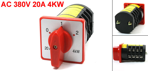 Product Name Changeover Switch Model No. HZ5-M08 Ue 380V Ith 20A Power 4KW Positions 3 Positions(1-0-2) Terminal Number 12 Body Size 56 x 48x 66mm / 2.2" x 1.9"x 2.6"(L*W*T) Panel Size 60 x 60 mm/2.4" x 2.4" (L*W) Overall Height 99mm / 3.9" Fixing Mount Hole Diameter 4mm/0.16" Fixing Mount Hole Center Distance 32mm/1.2" External Material Plastic, Electronic Parts Color Red, Black Net Weight 213g Package Content 1 x Changeover Switch