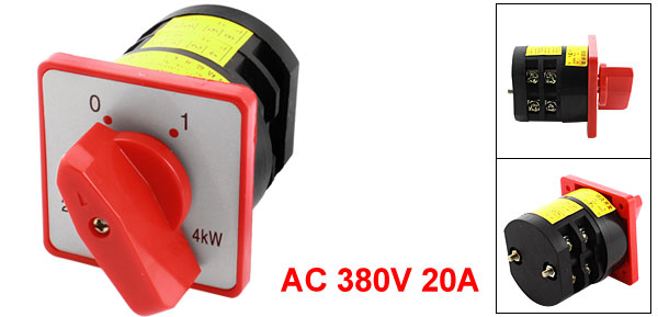 Product Name Cam Switch Model No. HZ5-20/4 L03 Rating 380V 20A 4KW Positions 2 Positions(0-1) Terminal Number 8 Body Size 54 x 46 x 52mm / 2.1" x 1.8"x 2.0"(L*W*T) Panel Size 60 x 60 mm/2.4" x 2.4" (L*W) Overall Height 95mm / 3.7" Mount Hole Diameter 4mm/0.16" Mount Hole Center Distance 46mm/1.8" External Material Plastic, Electronic Parts Color Red, Black Net Weight 233g Package Content 1 x Cam Switch