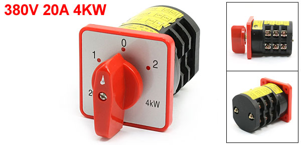 Product Name Cam Switch Model No. HZ5-20/4 M06 Rating 380V 20A 4KW Positions 3 Positions(1-0-2) Terminal Number 12 Body Size 56 x 48x 66mm / 2.2" x 1.9"x 2.6"(L*W*T) Panel Size 60 x 60 mm/2.4" x 2.4" (L*W) Overall Height 100mm / 3.9" Mount Hole Diameter 4mm/0.16" Mount Hole Center Distance 46mm/1.8" External Material Plastic, Electronic Parts Color Red, Black Net Weight 233g Package Content 1 x Cam Switch