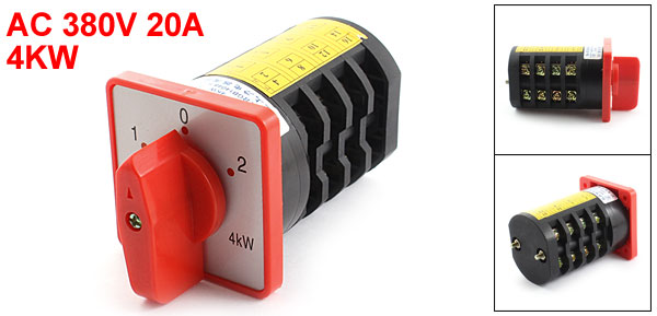 Product Name Combination Switch Rated Voltage(Ue) AC 380V 20A Power 4KW Contact Type Latching Positions 3(1-0-2) Terminal Number 16 Overall Size 110 x 60 x 60mm / 4.3" x 2.4" x 2.4"(L*W*H) External Material Plastic Net Weight 270g Package Content 1 x Combination Switch