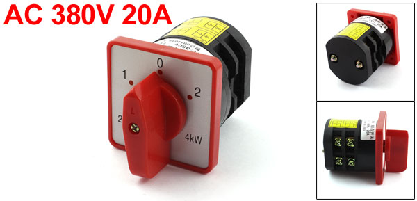 Product Name Changeover Switch Model No. HZ5D-20/4 M04-B Action Type Latching Ui AC 380V Ith 20A Power 4KW Positions 3(0-1-2) Terminal Number 8 Thread Hole Distance 46mm/ 1.81"(Center to Center) Thread Hole Diameter 4.4mm/ 0.17" Body Diameter 56mm/ 2.2" Overall Size 60x 60 x 88mm / 2.36" x 2.36" x 3.46"(L*W*H) External Material Plastic Net Weight 170g Package Content 1 x Changeover Switch