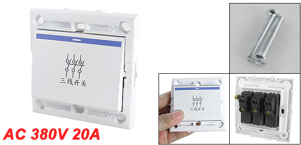 Product Name Wall Swith Withstand Voltage & Current AC 380V, 20A Front Face Size 8.2 x 8.2 x 0.7cm / 3.4" x 3.4" x 0.47"(L*W*Depth) Overall Depth 3.8cm / 1.05" Hole in the Front Face Dia 0.4cm / 0.157" External Material Plastic Color White Net Weight 63g Package Content 1 x Wall Swith - Reviews