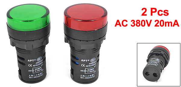 Product Name LED Indicator Light Voltage AC 380V,20mA Material Plastic, Electric Components Main Color Red,Green Size 5.2 x 2.8cm/ 2" x 1.1" (L*D) Net Weight 34g PakcageContent 2 x LED Indicator Light - Reviews