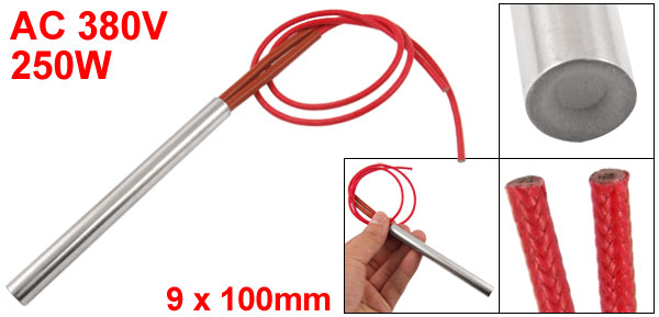 Product Name Cartridge Heater Material Stainless Steel, PVC, Nylon Rated Voltage AC 380V Power 250W Heater Size (Approx.) 9 x 100mm/ 0.35'' x 3.9'' (D * L)