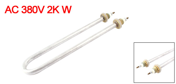 Product Name Water Heating Element Design U Shape Material Metal Rated Voltage AC 380V Power 2KW Bar Diameter 10.5mm / 0.41" Heater Size (Approx.) 26.5 x 5.7cm/ 10.4" x 2.2" (L*W) Thread Diameter 16mm/ 0.63", 4mm/ 0.16" Color Silver Tone Weight 125g Package Content 1 x Water Heating Element - Reviews