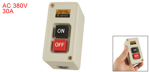 Product Name Power Push Button Switch Model TBSP-330 Type ON-OFF, Three Phases Material Plastic, Electric Parts Voltage AC 380V Current 30A Power 3.7Kw Total Size (Approx.) 9 x 4.5 x 5cm/ 3.5" x 1.8" x 2" (L*W*H) Color As Picture Shown Weight 109g Package Content 1 x Power Push Button Switch - Reviews