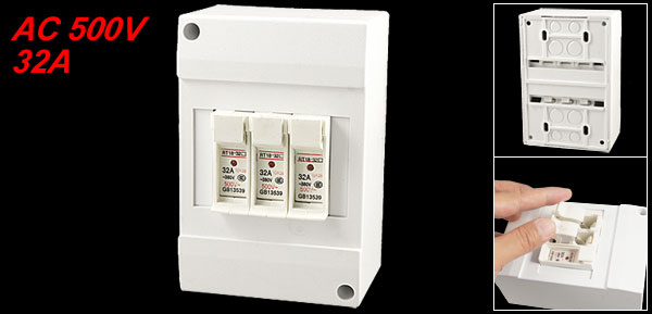 Product Name Fuse Holder Type RT18-32 Fit Fuse Type 10 x 38mm(Not Included Here) Rated Insulation Voltage 500V Rated Voltage AC 380V Rated Current 32A Poles Quantity 3 Material (Casing) Plastic Color White Overall Size(Approx) 12.8 x 8.8 x 7cm/ 5" x 3.5" x 2.8" (L*W*H)