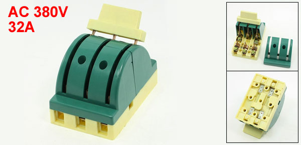 Product Name Disconnect Switch Phase 3 Throw 3 Rated Voltage AC 380V Rated Current 32A Overall Size(Approx) 103 x 67 x 65mm/ 4.1" x 2.6" x 2.6" (L*W*H) External Material Plastic, Ceramic Color Green, Beige Net Weight 237g Package Content 1 x Disconnect Switch - Reviews