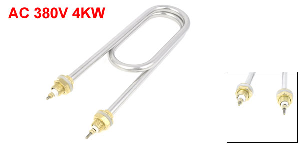 Product Name Electric Heating Tube Shape Multi-bend U Type Material Stainless Steel Rated Voltage AC 380V Power 4KW Bar Diameter 12mm / 0.47" Heater Size (Approx.) 33 x 8.5cm / 13" x 3.3" (L*W) Thread Diameter 18mm / 0.71" ; 4mm / 0.16" Color Silver Tone Weight 558g Package Content 1 x U Shaped Electric Heating Tube