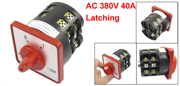 Product Name Changeover Switch Model No. HZ5D-40/7.5 L03 Action Type Latching Ui AC 380V Ith 40A Power 7.5KW Positions 2(0-1) Terminal Number 8 Thread Hole Distance 57mm/ 2.24"(Center to Center) Thread Hole Diameter 4.4mm/ 0.17" Body Diameter 70mm/ 2.76" Overall Size 73x 73 x 103mm / 2.87" x 2.87" x 4.06"(L*W*H) External Material Plastic Net Weight 283g Package Content 1 x Changeover Switch