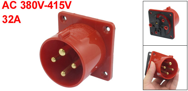 AC 380V-415V 32A 3P+E IEC309-2 Panel Mount Industrial Plug Red
