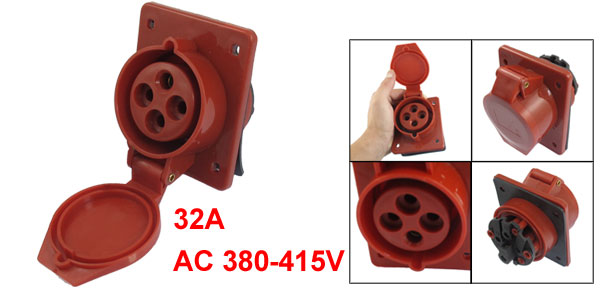 AC 380V-415V 32A 3P+E IEC309-2 Panel Mount Industrial Socket Red