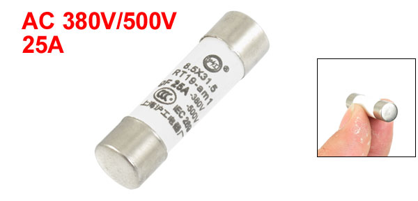 Product Name Ceramic Fuse Model RT19 Type Fast Blow Rated Voltage AC 380V/500V Rated Current 25A Dimension 8.5 x 31.5mm/ 0.33" x 1.2" (D*L) Material Metal, Ceramic, Electronic Parts Main Color White, Silver Tone Net Weight 4g Package Content 1 x Ceramic Fuses - Reviews
