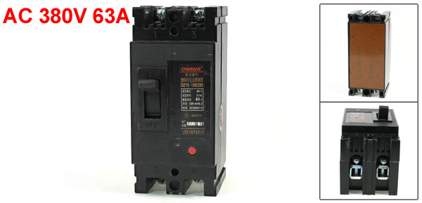 Product Name Moulded Case Circuit Breaker Model DZ15-100/290 Pole Number 2P Frequency 50/60Hz Rated Current 63A Rated Voltage AC380V Overall Size(Approx.) 145 x 75 x 65mm / 5.7" x 2.9" x 2.5"(L*W*H) Shell Material Plastic Main Color Black Net Weight 643g Package Content 1 x Moulded Case Circuit Breaker
