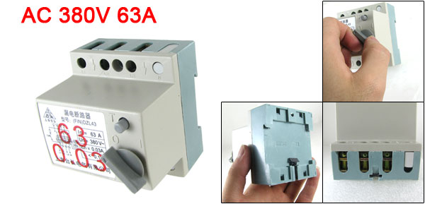 Product Name Earth Leakage Circuit Breaker Model No. DZL43(FIN) Rated Voltage AC 380V Rated Current 63A Pole 3P Rated Operating Current for Earth Leakage 0.03A(30mA) Residual Current off-time <0.1s Rated Conditional Short Circuit Current 3000A Overall Size (Approx.) 75 x 70 x 77mm / 2.95" x 2.8" x 3.0"(L*W*H) Material Plastic, Electric Components Weight 258g Package Content 1 x Earth Leakage Circuit Breaker - Reviews